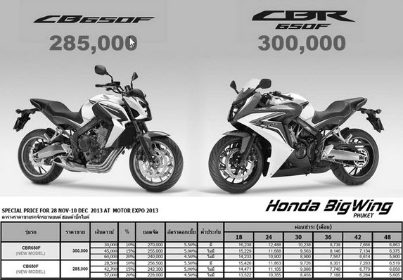 สำหรับฮอนด้า cbr650f ราคาผ่อน ตอนเปิดตัวนั้นก็อยู่ประมาณนี้ โดย ดาวน์ขั้นต่ำที่ 10 % ของราคารถ คือ 30,000 บาท ผ่อนนาน 48 เดือน ผ่อน 6694 บาท ต่อเดือน