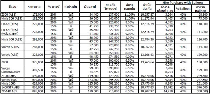 ข้อมูล ราคา ผ่อน kawasaki z650