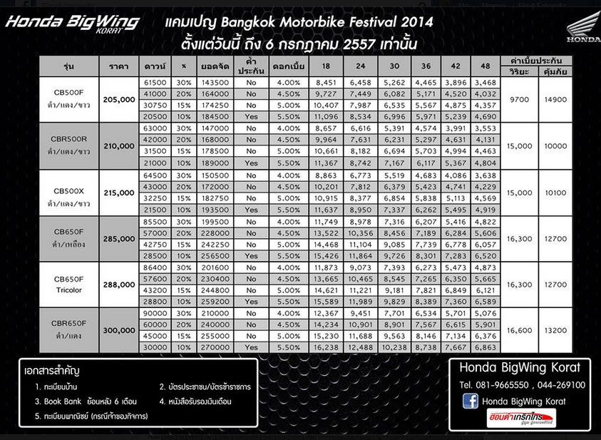 รถมอเตอร์ไซค์ดอกเบี้ยถูกที่สุด ณ งาน  Bangkok Motorbike Festival 2014   ค่าย Honda นำบิกไบค์เข้าร่วมงานด้วยกันหลากหลายรุ่น ให้เลือกพิจารณาสำหรับ เอกสารที่ต้องใช้สำหรับขอสินเชื่อกับทางไฟแนนซ์