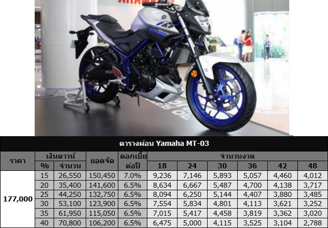 Yamaha MT-03 ตารางผ่อน, Yamaha MT-03 ผ่อน, Yamaha MT-03 ราคา